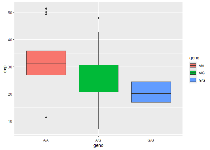 Boxplot of the genotype vs expression: